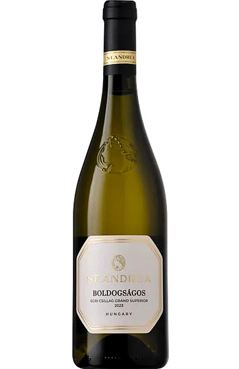 Illat: Az Egri Boldogságos (Egri Csillag Grand Superior) 0,75 St.Andrea (DRS) bor egy olyan száraz, fehér borok házasítása, amelyekben mindegyik alkotó legelőnyösebb tulajdonságai dominálnak. Savai finomak, élénkek, a maradék cukor pont jó. Lendületes, frissítő hatású, citrusos, citromfüves, grapefruitos, zöldalmás, körtés, barackos illatai megkapóak már az első pillanatban. Nagyon gyümölcsös, szőlő gyümölcsös, kicsit mangós, bodzás.